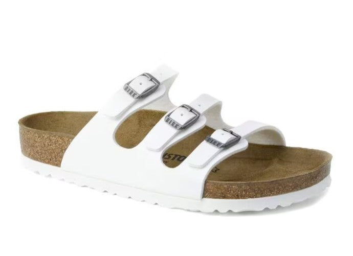 BIRKENSTOCK has given the classic Florida model a new lease on life. Thanks to the three slender straps that can be adjusted, the sandal offers a customizable fit. The upper is made of skin-friendly, hard-wearing Birko-Flor.