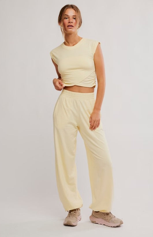 Effortlessly comfy, this set is easy to throw on before or after workouts, featuring a super soft fabrication and perfectly lived-in look.