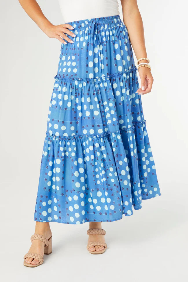 Elevate your summer style with our Verbena Dot Print Tiered Skirt! The lightweight fabric and flowy tiers make it perfect for hot days. Pair it with a cute top and sandals for a chic look that's as comfortable as it is stylish.