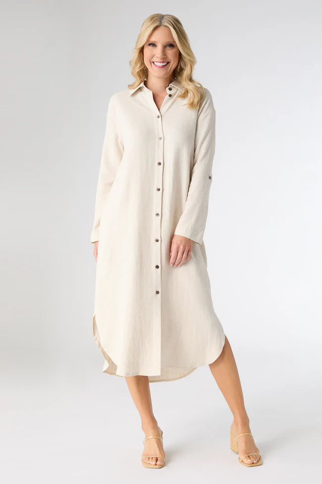 Add a touch of sophistication to your outfit with the Keira Long Sleeve Dress. The back button detail is a chic addition to this stylish piece. Made with comfort in mind, this dress is perfect for all-day wear. Pair with your favorite accessories for a complete look that's sure to turn heads.