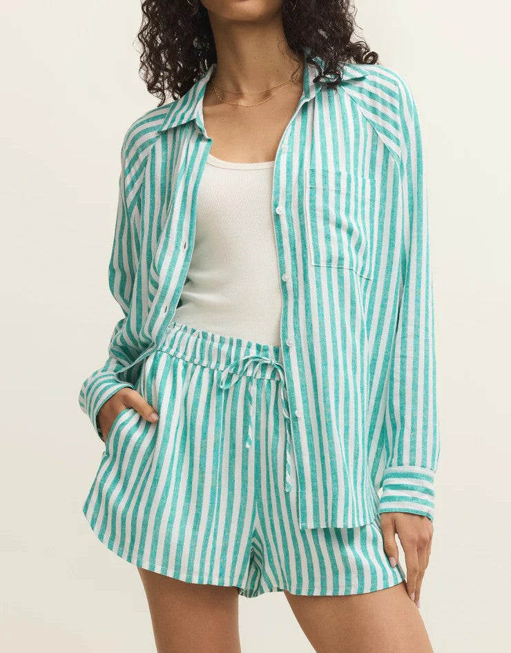 You'll love the easy, breezy comfort of this classic stripe button-up. Featuring that soft, drapey feel you look for, you can wear it alone or as a lightweight layer for an effortless look, no matter where your day takes you.