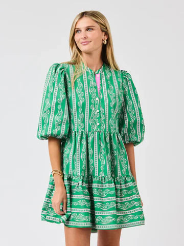 Meet the Riley Mini Dress: easygoing, charming, and ready for anything. Designed with comfy 3/4 sleeves finished with elastic and contrast grosgrain trim along the button placket, it’s all about thoughtful details. The tiered mini skirt adds soft movement and shape, while side pockets keep things effortlessly practical. A feel-good favorite you’ll reach for on repeat.