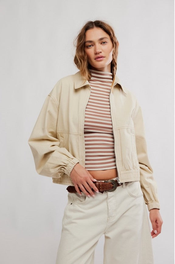So essential for any-season layering, this cotton twill jacket from We The Free is featured in the perfect bomber-inspired style with a zip-front closure for an effortless addition to any outfit.
