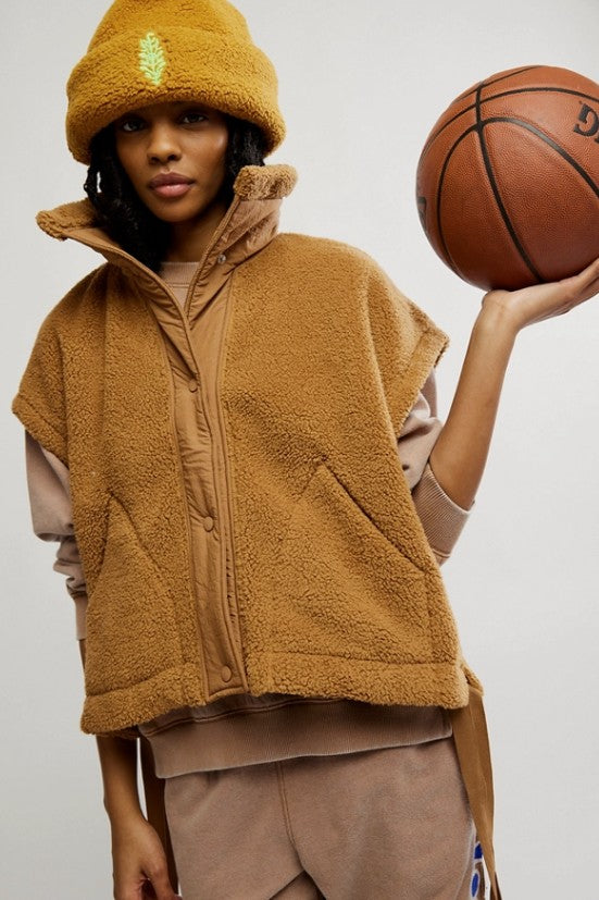 So necessary for your next camping trip, this cozy fleece vest is featured in an oversized fit and classic sleeveless design with a button-front closure and cozy hand pockets.