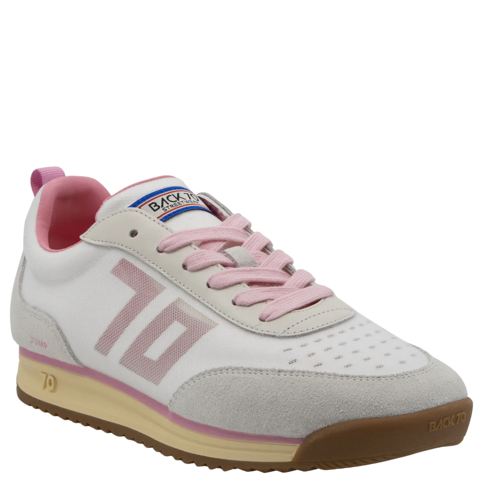 Enter an era of transparency in Jump -a running-style vintage sneaker illuminated with floating effects and unexpected surfaces. Frosted light radiates through delicate overlays in a retro-futuristic aesthetic that is neither artificial nor entirely natural. Romantic pastels and abstract color block designs are both soft and discreet, white blending culture and creative impulse for a style that brings conceptual energy into the light.