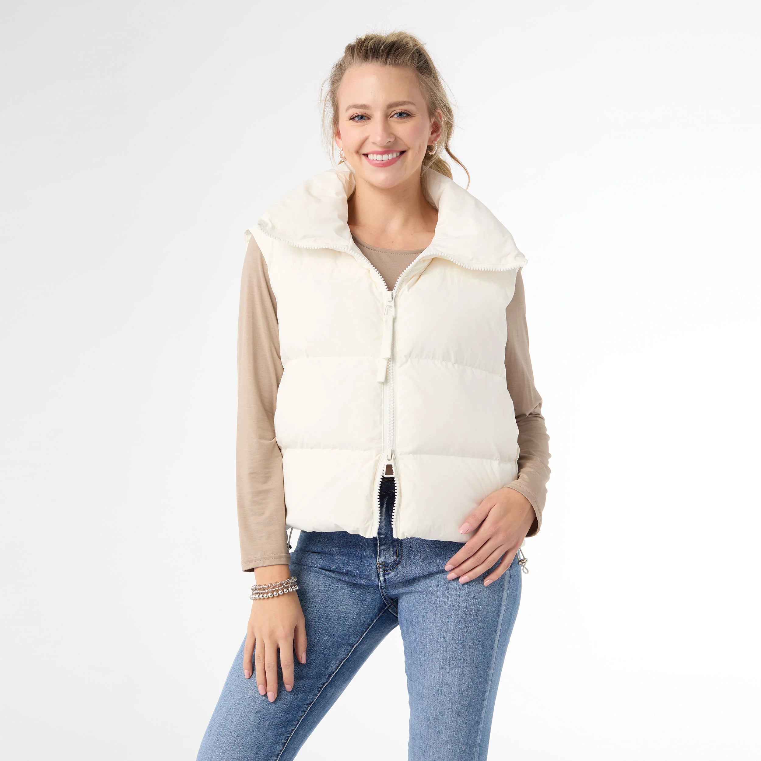 Say hello to your new favorite fall staple - the Jessica Down Filled Vest with Duo Zipper! Made with lightweight down filling, this vest is perfect for layering over sweaters and long sleeve tops for added warmth. The duo zipper feature allows you to adjust the fit and style to suit your preferences. From pumpkin picking to coffee dates, this vest has got you covered.