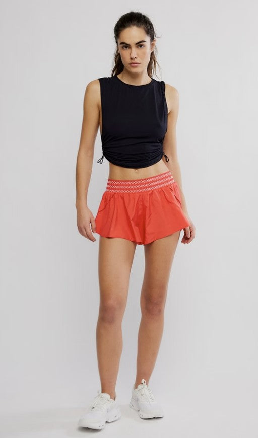 Woven, elastic waist shorts.