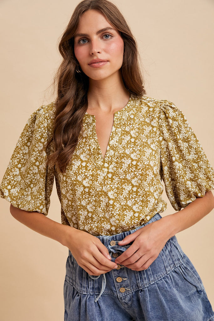 Floral Embroidered top with scallop edge and front bow tie closure.