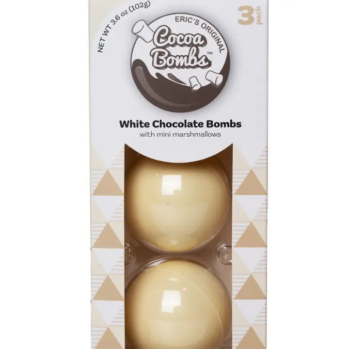 MADE 100% IN THE USA 3-Pack of velvety and sweet White Chocolate Classic Cocoa Bombs™ each packed with tons of mini white marshmallows! Each product is made with 100% real chocolate and other specialty ingredients for an explosively-fun experience and rich flavor! Cocoa Bombs™ are the perfect twist to ordinary and BORING hot cocoa powder.