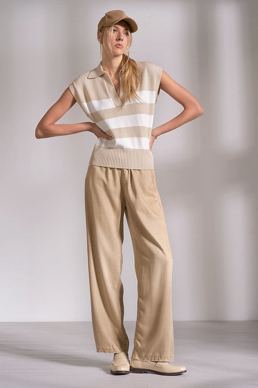 Elevate your everyday wardrobe with this classic striped sweater top. Featuring a collared neckline with subtle notching and comfortable short sleeves, it's the perfect layering piece for transitional seasons. The timeless stripe pattern pairs effortlessly with jeans, skirts, or tailored trousers for versatile styling options that work from office to weekend.