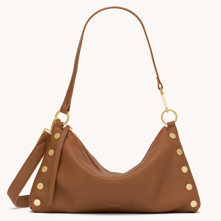Our newest addition to the Kyle family is the Kyle Med. Featuring a slouchy but current shape, this versatile little number transitions from a wristlet to a shoulder bag in seconds flat. The Kyle also includes a removable and adjustable crossbody strap, so you can go hands-free. Embrace the warm allure of this medium brown hue, enriched with a delicate yellow undertone that adds depth and sophistication to any ensemble. The Kyle Med has the same easy to use features as our best seller - now offered in a large size!