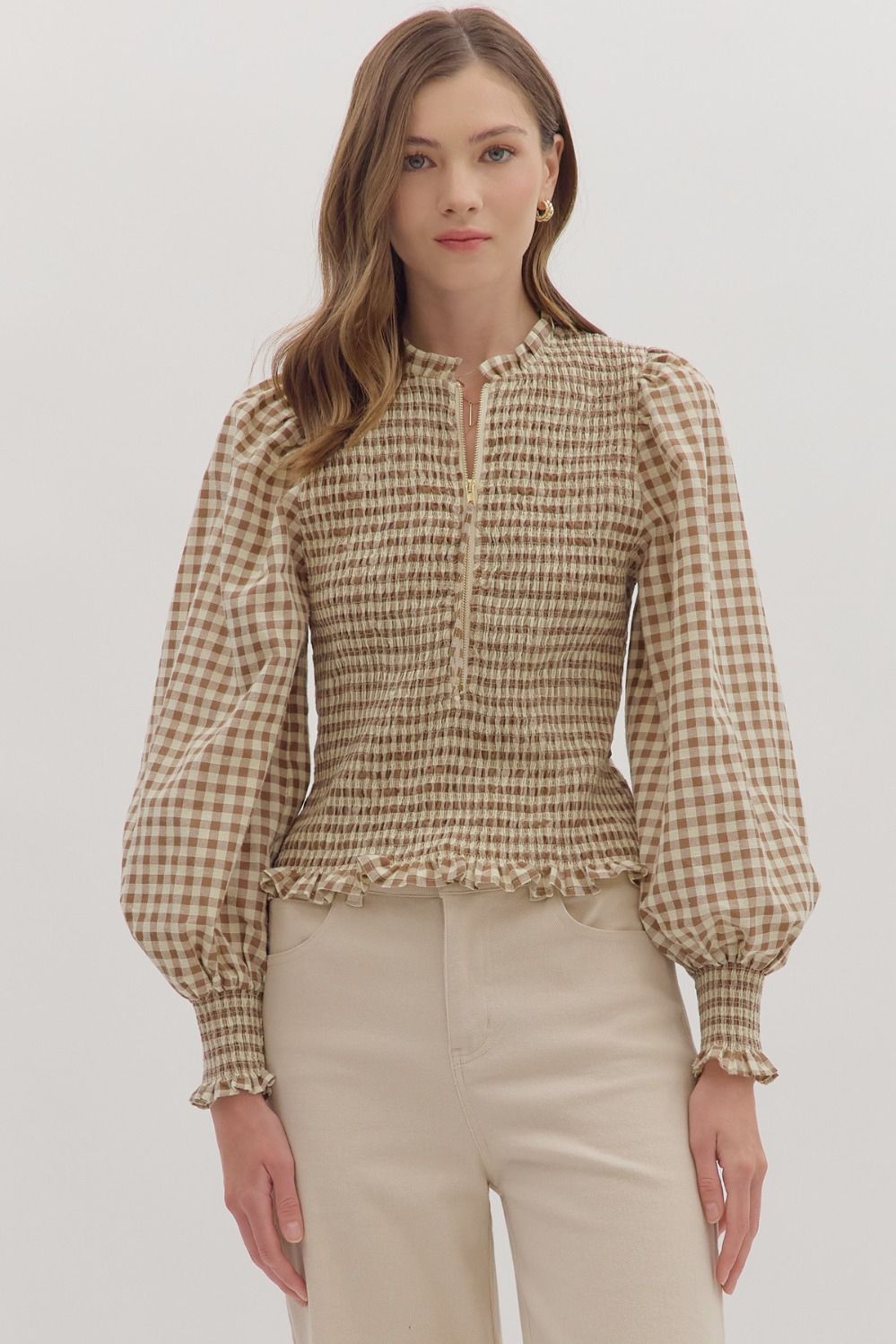 Leanna Top - Brown / S is backordered and will ship as soon as it is back in stock.